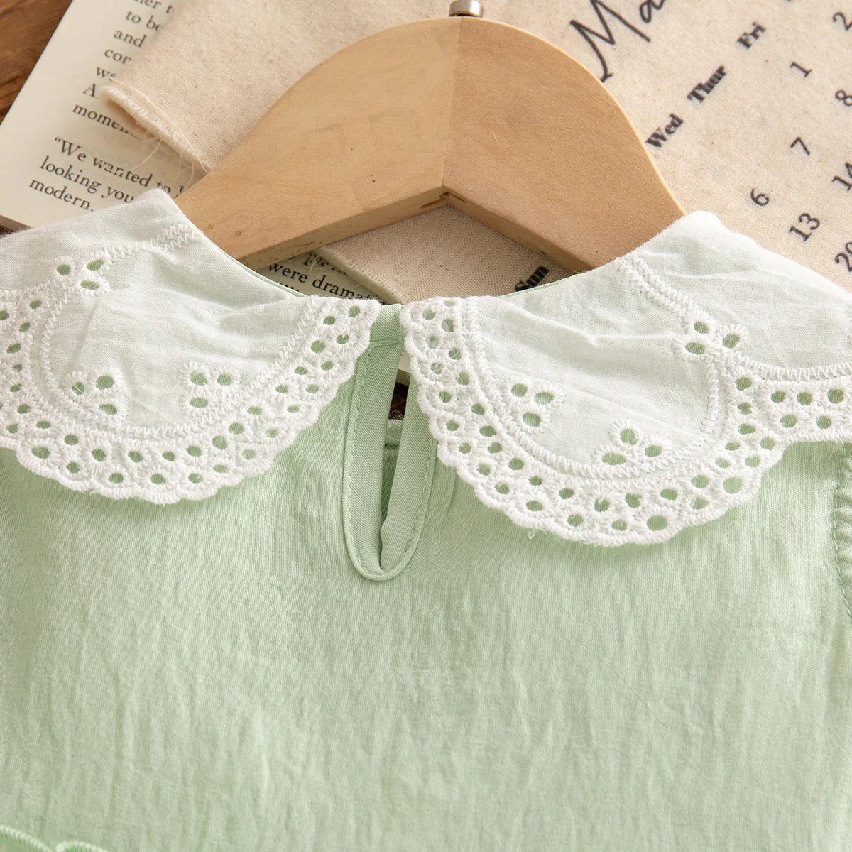 Summer New Solid Color Lace Trim Doll Neck Gentle Baby Dresses Cute Casual Baby Girl's Girl Princess Dresses loading