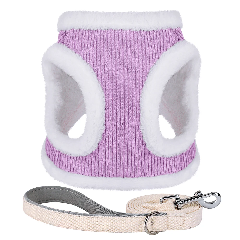 Warm Dog Harness Leash Set Soft Puppy Dog Harnesses With Fur Pet Walking Lead Adjustable Vest For Small Medium Dogs Chihuahua