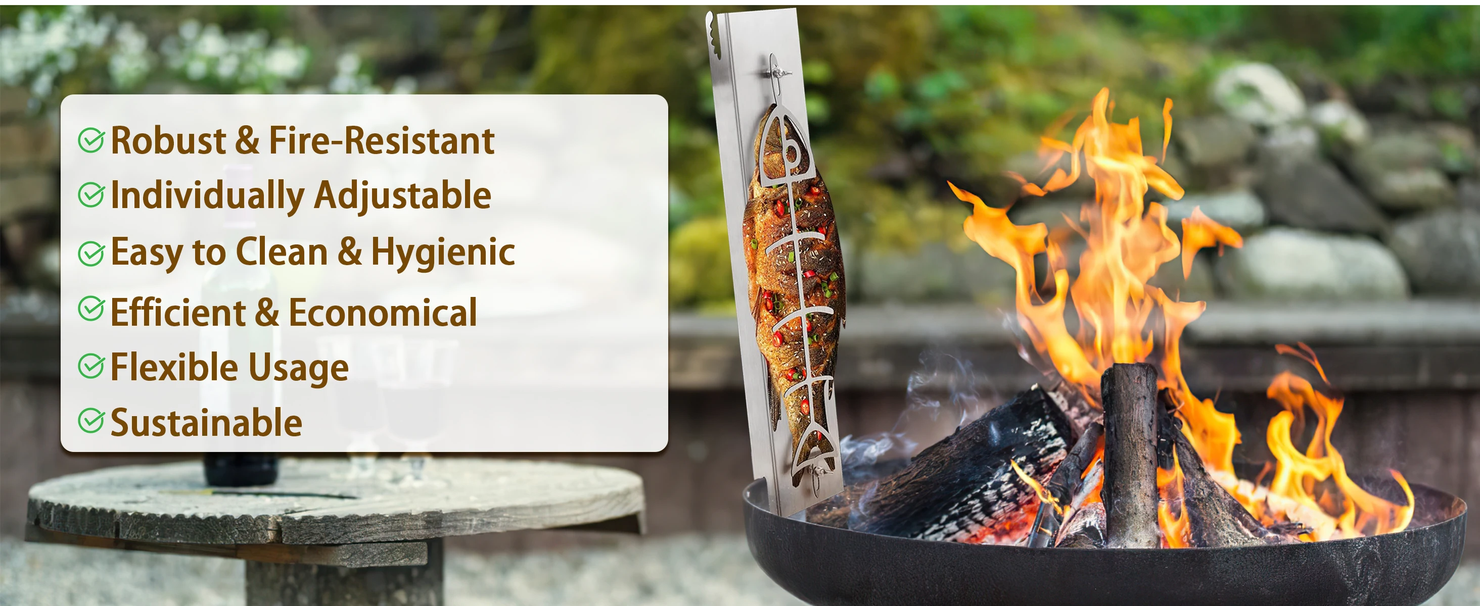 The Flame Salmon Holder ensures secure handling while grilling, making it a reliable choice for outdoor cooking. Designed for smooth operations, this camping cookware is ideal for barbecues, picnics, and fishing trips. Whether used on the patio, yard, or lawn, its durable design supports effortless grilling board management during BBQ sessions. Perfect for outdoor enthusiasts seeking convenience and functionality.