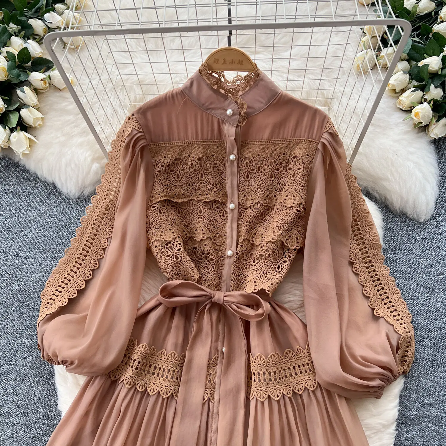 Elegant Hollow Out Organza Long Maxi Dresses Shirt Women Spring Summer Layer Ruffle Full Sleeve Pearl Evening Party Vestidos Elegant Hollow Out Organza Long Maxi Dresses Shirt Women Spring Summer Layer Ruffle Full Sleeve Pearl Evening Party Vestidos