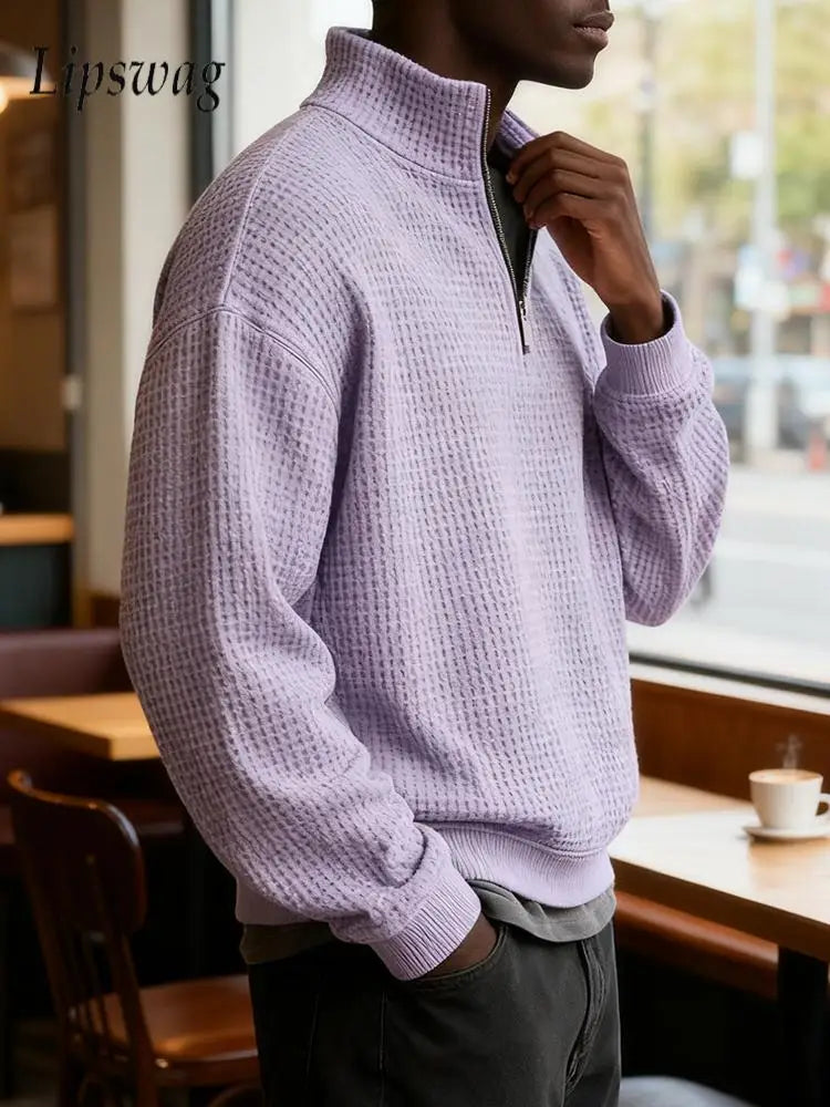 Outdoor Casual Mens Solid Color Jumper Tops Fall Winter Leisure Zipper Stand Collar Sweatshirts Men Stylish Long Sleeve Hoodies