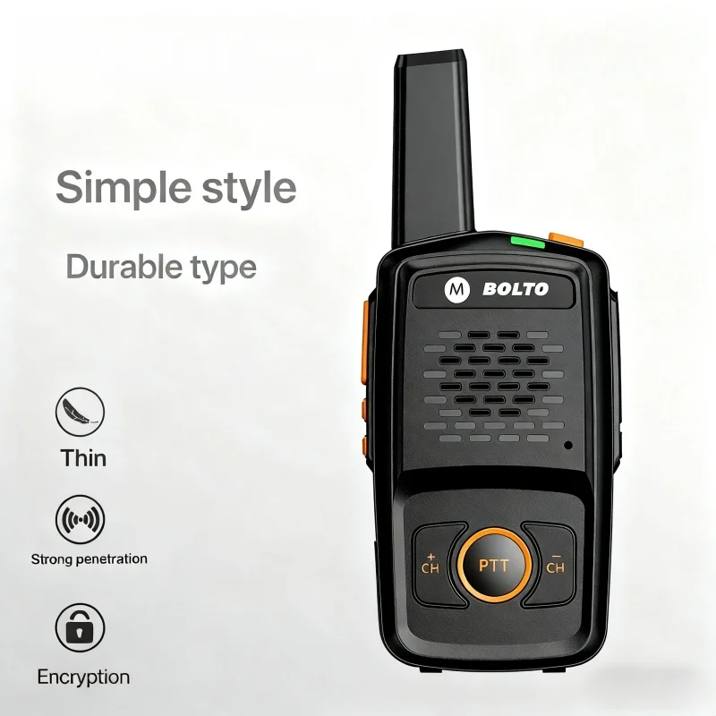 With IP45 waterproof certification, this walkie talkie can withstand light rain or splashes, ensuring reliable performance in various conditions.