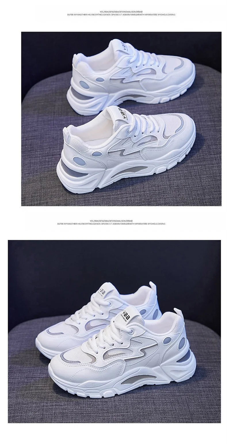 2023 Shoes Female Spring New Net Shoes Breathable Stripes Hit Color White Sports Walking Flats Shoes for Women