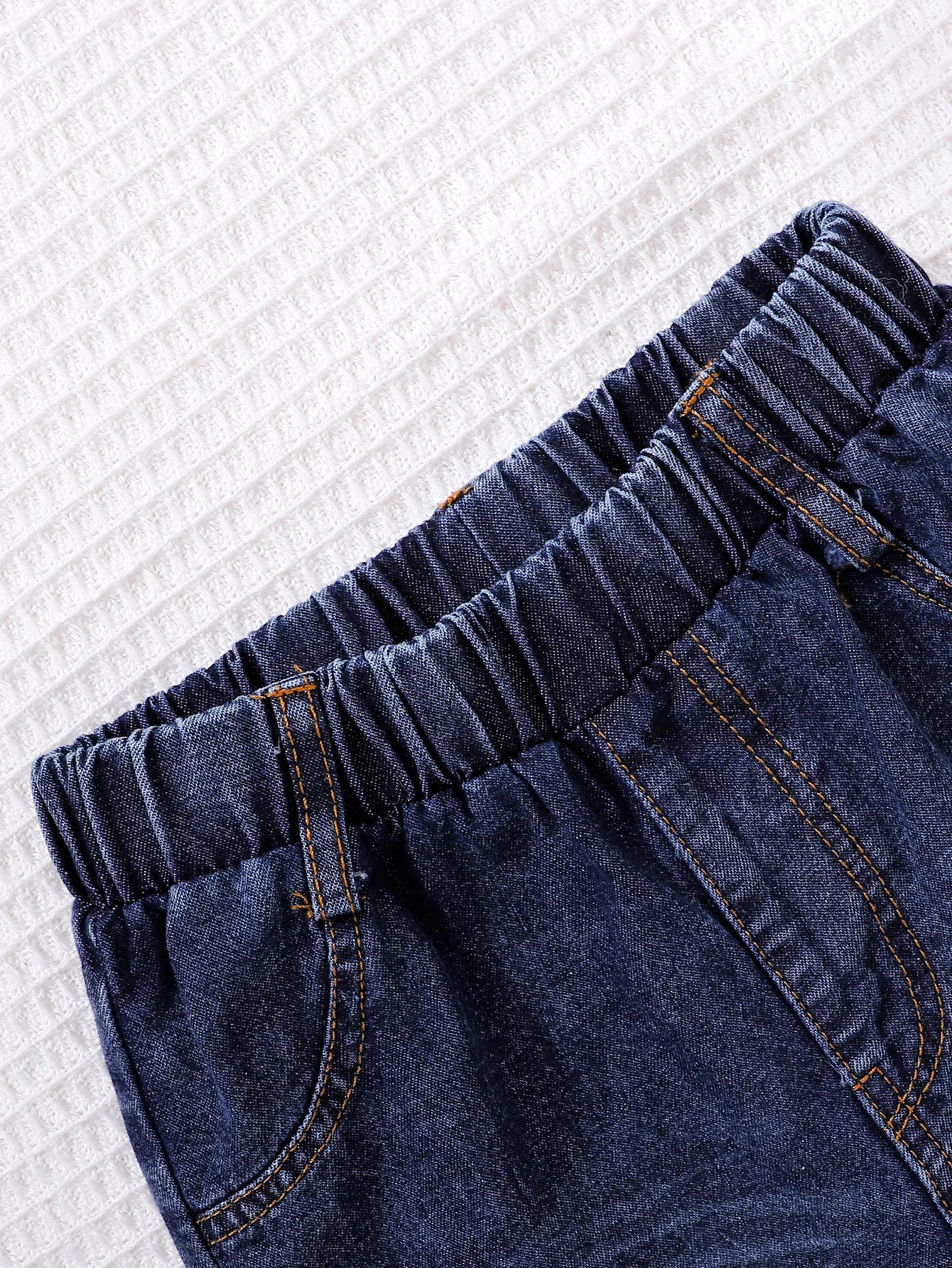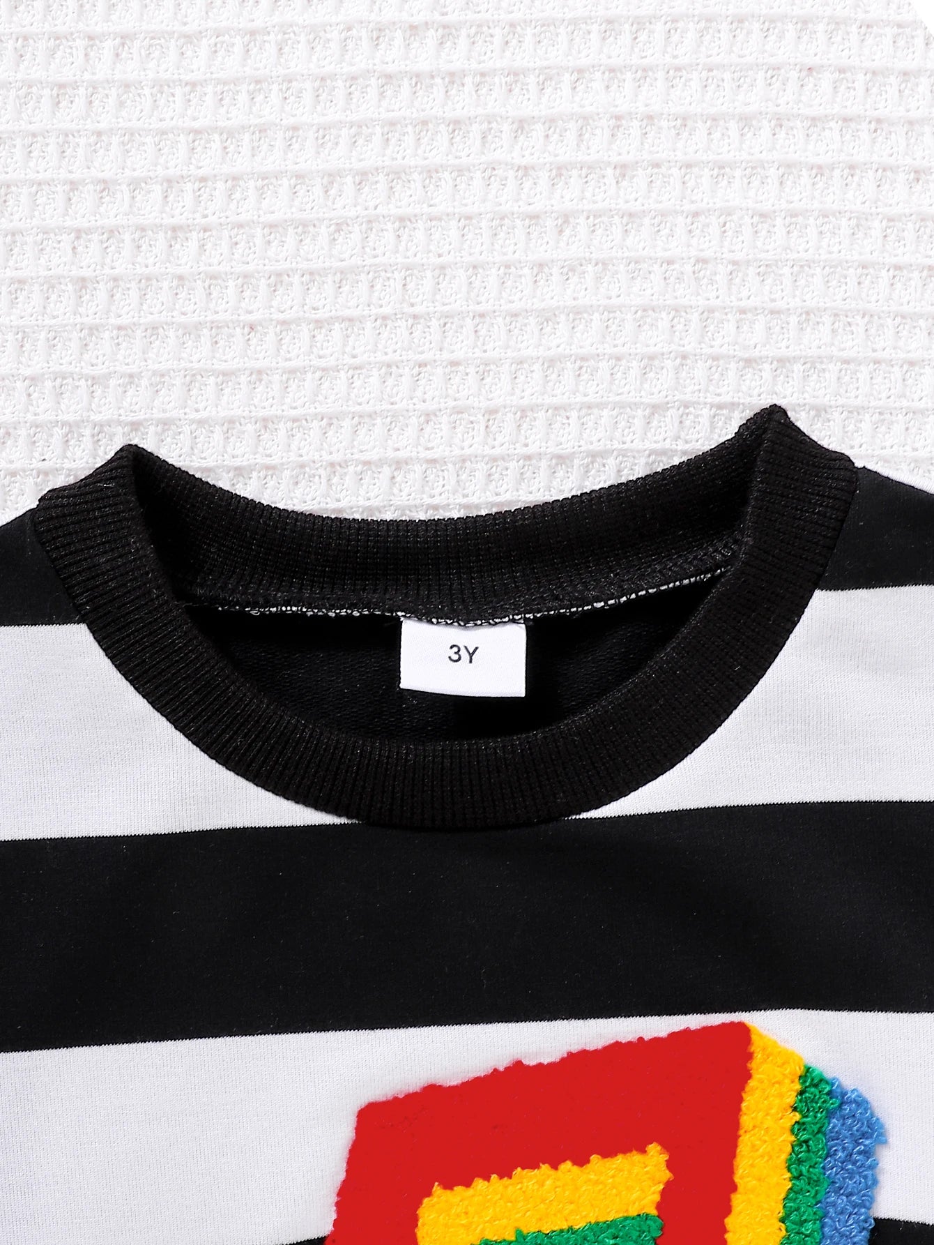 Unisex Kids Casual Striped Note Long Sleeve Top with Denim Pants Two-Piece Set for Boys And Girls